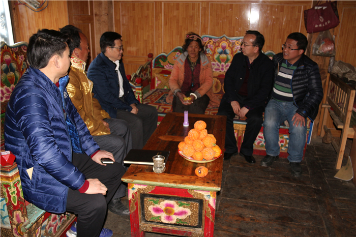 3月18日上午,刘毅一行一到得荣县就在杜靓、王张陪同下赴Beat365对口帮扶的俄木学村,与俄木学村村支书、村主任、驻村第一书记、驻村干部及其他干部、村民代表一道实地考察了该村的基础设施建设、生产生活情况,亲切看望贫困群众,深入由学校党委书记、校长“一对一”帮扶的重色曲措和郎吉校代拥忠两个贫困家庭,与户主重色曲措、郎吉校代拥忠亲切交谈,详细了解两个家庭的生产生活等情况,并送上慰问金。
