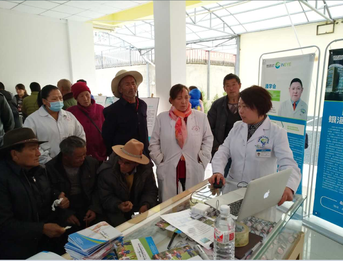 眼科专家袁晓辉等七位专家为来自全县各乡镇300余名藏族同胞进行义诊。医护团队应用四川省视力保护科普基地“流动科普馆”“七合一”智能机器人、全自动眼底照相机、裂隙灯显微镜等先进眼科设备,为当地人民群众提供医学视力检查服务和专业的眼部检查,通过远程云服务出据专业诊疗数据报告,并建立详细、全面的眼健康档案。