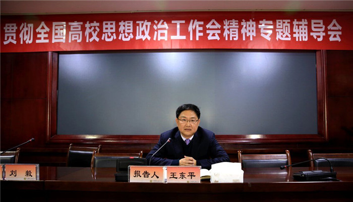 为学习好贯彻好落实好这次会议精神, 12月27日,由党委书记刘毅主持,四川交通职业技术学院党委书记王东平教授应邀来校做专题辅导报告。王东平长期从事高校思想政治工作,具有深厚的理论功底和丰富的实践经验,他参加了本次全国高校思想政治工作会议并代表四川高校在大会上作了经验交流发言。