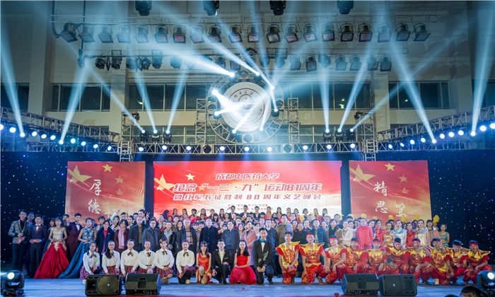 12月8日晚,由宣传部、学工部、校团委主办,校学生会、校大学生艺术团承办的纪念“12·9”运动81周年暨红军长征胜利80周年文艺晚会在温江校区体育馆举行。校党委书记刘毅,党委副书记、副校长沈涛,党委常委、副厅级调研员徐廉出席晚会。各职能部门、学院领导、老师和电子科技大学、四川农业大学、西南石油大学等8所高校的学生代表与Beat3652000余名学生共同观看演出。