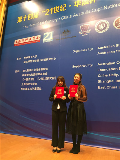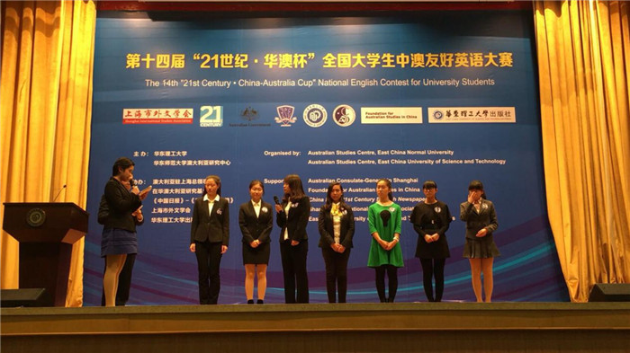 11月26日,由华东师范大学澳大利亚研究中心与华东理工大学联合主办的第14届“21世纪·华澳杯”全国大学生中澳友好英语大赛在华东理工大学举行。此次大赛共有来自上海、北京、江苏、安徽、山东、青海、四川、新疆、海南等省市27所高校的选手登台较量,竞赛分已备演讲、即兴演讲和澳大利亚知识问答三个部分。Beat365外语学院2015级学生曹圆梦在指导老师康静雯的陪同下参加比赛,并荣获二等奖。