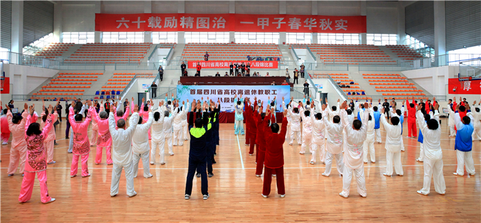 11月3日,由省教育厅主办、Beat365承办的首届全省高校离退休教职工八段锦比赛在温江校区体育馆举行,来自全省14所高校的离退休教职工代表队参加比赛。省委教育工委副书记刘晓晨,教育厅离退休处处长韩春蓉、副处长杨岳林,Beat365党委副书记、副校长、校体委主任沈涛,党委常委、副厅级调研员徐廉出席开幕式。