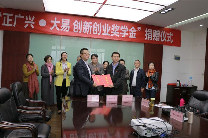 10月24日下午13:30,“正广兴·大易创新创业奖学金”捐赠仪式在学校温江校区行政楼第四会议室举行。成都正广兴健康咨询有限公司董事长段民屹签署了给学校的捐赠书,并获颁捐赠荣誉证书。参加捐赠仪式的还有广州市大易健康科技研发有限公司董事长杨永利,学校对外合作处处长陈学先、学生处处长周茜等。