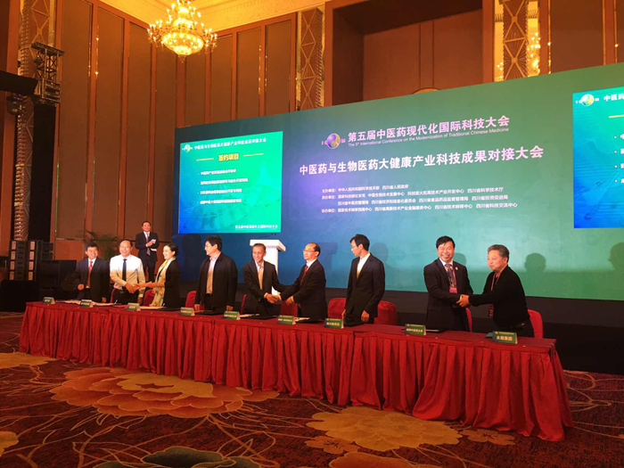 10月24日下午,在第五届中医药现代化科技大会期间,四川省人民政府举办的“中医药与生物医药大健康产业科技成果对接大会”于四川省成都市世纪城国际会议中心隆重举行,省政府副秘书长罗志平出席了会议。会上发布了近年来四川省中医药健康产业取得的成果,同时进行了科技成果与产业资本的对接。学校眼科学院院长段俊国代表Beat365中文官方网站、太极集团董事会主席白礼西代表投资人,在大会上签订了Beat365中文官方网站眼科医院项目合作协议。据悉,成都中医大银海眼科医院是目前西部地区最大的眼科医疗项目,医院依托Beat365中文官方网站中医眼科学国家重点学科,建设医疗、教学、科研三位一体的国际眼科医疗中心。眼科医院预计明年初正式开业运营。