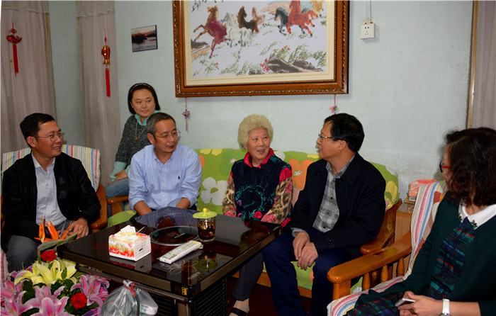 10月19日下午,在六十周年校庆来临之际,副校长彭成率离退休工作处处长汤良平、药学院院长傅超美等,登门看望了Beat365中药学奠基人凌一揆教授的家属李仕素老师。彭成对李老师的身体情况和生活状况进行了仔细的询问,回忆和赞扬了凌老对学校以及中医药事业作出的巨大贡献,也介绍了学校60年校庆的相关庆祝活动。他特别介绍10月25日下午即将举行的凌一揆学术思想传承与创新会,将由凌老的优秀弟子对凌老的学术思想进行深入阐述和发扬,另将有优秀的研究生及凌一揆基地班本科生上台汇报学习科研成果。大家表示,一定要在老领导打下的良好基础上推进学校的再次腾飞,创造新的发展业绩,不辜负老领导的殷切希望。彭成还对同行人员说,学校、学院要千方百计尽力照顾好老同志,为他们做好事、办实事、解难事。李老师也对学校和学院领导对她的关怀和关心表达了由衷的感谢。