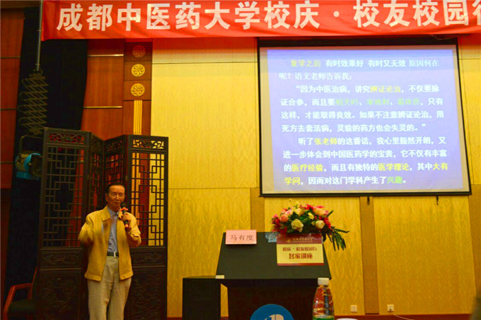 10月23日下午两点半,“校庆·校友校园行”第九场名家讲座在温江校区药学楼学术报告厅举办。杰出校友马有度教授回母校进行了讲座。