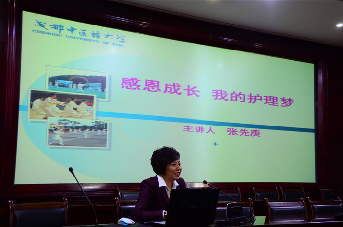 座谈会邀请学院杰出校友、学院第三任院长、四川省护理职业学院院长张先庚教授作主题报告。张先庚教授以“感恩成长,我的护理梦”为主题,向师生、校友们分享了自己的成长经历,表达了自己对学校、学院以及护理专业的真挚热爱,并用“师道尊严、医护相长”与大家共勉,希望大家常怀感恩之心,勤奋执着,在护理之路上勇敢前行。