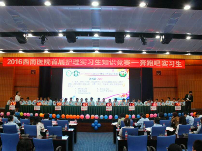 9月30日,西南医院(中国人民解放军第三军医大学第一附属医院)举行了名为“奔跑吧实习生”的首届护理实习生知识竞赛,在该院实习的Beat365护理学专业35名同学派出由陈娇娇、钟懿珠、覃艳莉、周苏梅等4名同学组成的代表队参加比赛,与来自第三军医大学、重庆医科大学、西南医科大学等16家医学院校的实习生代表队展开了角逐。