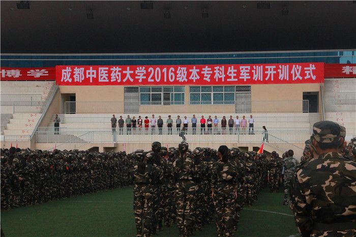 9日上午9:00,2016级本专科学生军训开训仪式在温江校区田径场举行。校长梁繁荣,副校长余曙光、彭成,纪委书记、学生军训工作领导小组组长延建明,2016级本专科学生旅长吴晓霖,学校相关部门及各参训学院领导出席开训仪式,校武装部工作人员、2016级全体学生及承训部队官兵参加开训仪式。开训仪式由校武装部部长、军训旅参谋长侯杰主持。