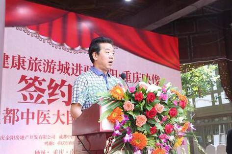 马跃荣在讲话中介绍了学校发展历程和在中医药事业上做出的成绩,向重庆市南岸区政府对Beat365国医馆落户重庆市南岸区给予的大力支持表示感谢,希望金阳集团与Beat365进一步精诚合作,发挥双方优势做大做强中医药健康养生产业。