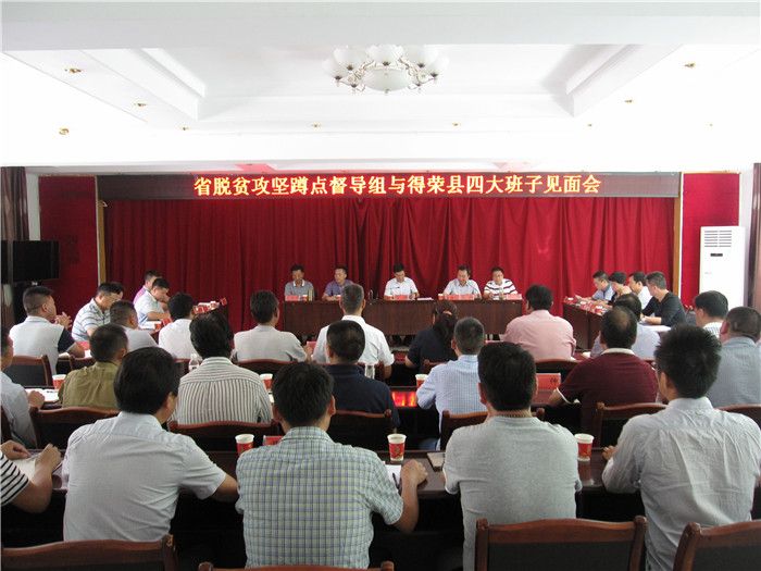 8月23日召开了“省脱贫攻坚蹲点督导组与得荣县四大班子见面会”,叶壮副省长明确了深化思想认识、坚持问题为导向、严格工作要求的三点督导意见。