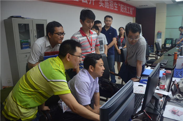 7月30日,四川省教育考试院副院长张刚、招生一处处长冉启银和省教育纪工委、信访办相关同志一行6人到Beat365温江校区检查指导本专科招生录取工作,参观Beat365招生录取场。学生处/招生就业处处长叶军,学生处/招生就业处副处长王海、田晓放,校纪委办公室主任张景萍向省教育考试院领导汇报Beat365本专科招生工作情况。
