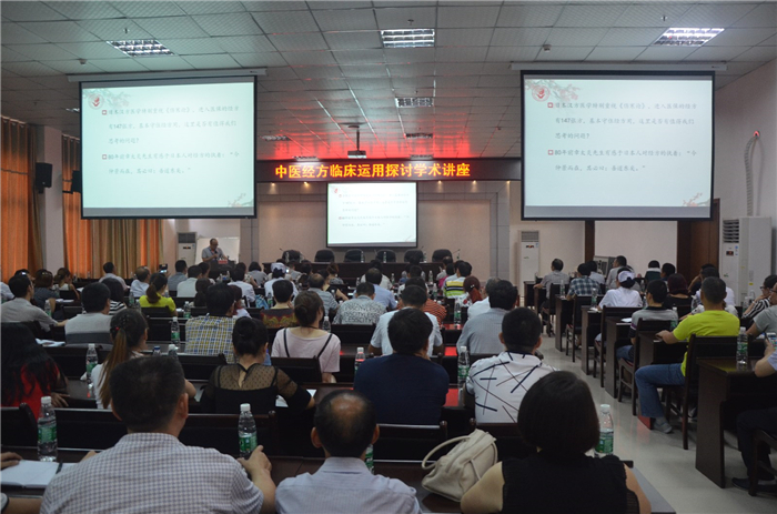 服务团专家鲁法庭就经方临床运用进行专题讲座。苍溪县各乡镇卫生院、分院中医科主任,县中医医院全体业务人员120余人参加讲座。