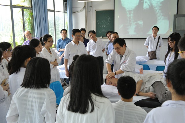 彭成向与会专家介绍Beat365中文官方网站、办学特色与实验室基本情况。他指出,学校历来高度重视实验室建设,积极开展实验教学改革,逐步形成了以国家级实验教学示范中心为引领、省级实验教学示范中心为支撑、校级实验教学中心为基础的多层次实验教学体系,为提升学生的动手实践能力和创新能力提供了良好的平台。目前,针灸学实验教学示范中心已成为以科研反哺教学、中医特色鲜明的高水平示范中心。