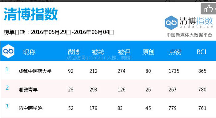学校官方微博在医学院校微博影响力周榜中位居首位(5.29-6.4) 发布时间:2016-06-12 11:46:00 浏览次数: 次 【字体:小 大】 (编辑/任翔) 【打印正文】 上一条:学校官方微博在医学院校微博影响力周榜中位居首位(5.29-6.4) 下一条:武胜县委书记毛加庆带队到校洽谈合作