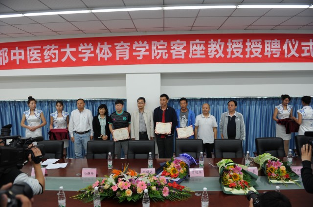 体育学院院长邬建卫为5位受聘嘉宾颁发客座教授聘书,正式聘请前四川全兴足球俱乐部主教练、现四川足球协会校园足球办公室主任余东风,前中国国家足球队队长马明宇,前国家队球员姚夏、邹侑根,前成都谢菲联足球俱乐部副总经理罗晓维5人为Beat365中文官方网站体育学院客座教授。罗晓维代表客座教授发言,表示将通过指导运动员训练、开展足球师资培训等方式,把更专业足球教育理念带到成中医,努力帮助学校提高足球运动水平。