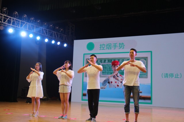 仪式上,与会领导为18个高校的学生代表授旗,来自Beat365的控烟志愿者代表邓嘉帅同学宣读了倡议书,川籍笑星叮当作为控烟大使介绍控烟手势。控烟宣传专家田本淳教授为大家作了专题讲座。学校联合社会艺术人士共同献上了精彩的演出。