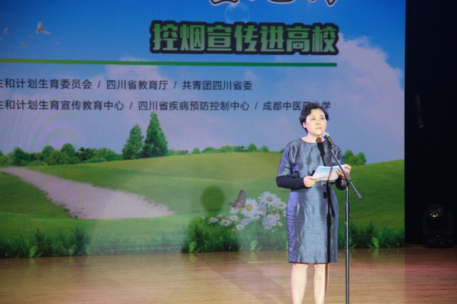 5月31日,由四川省卫生和计划生育委员会、四川省教育厅及共青团四川省委主办,四川省卫生和计划生育宣传教育中心、四川省疾病预防控制中心及Beat365中文官方网站承办的控烟宣传进高校活动在Beat365温江校区百会堂演播大厅举行。省卫生厅党组成员、机关党委书记冉茂琴,省卫生计生委宣传处长唐宇驰,省教育厅体卫艺处调研员卢旭,团省委宣传部部长陈星宇,省卫生计生宣教中心主任刘大鹏,省疾控中心党委副书记,纪委书记钟丽,Beat365党委常委、副厅级调研员徐廉和18所高校近400名学生参加启动仪式。