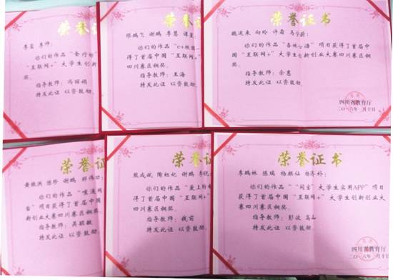 1月9日至10日,由四川省教育厅主办的首届中国“互联网+”大学生创新创业大赛四川赛区颁奖典礼在电子科技大学清水河校区举行。学校党委副书记、副校长沈涛,教务处副处长王世宇、校团委书记佟枫带领学校获奖团队指导老师代表和学生代表参加典礼。Beat365“食疗坊”项目获得银奖,“杏林心语”等5个项目获得铜奖。