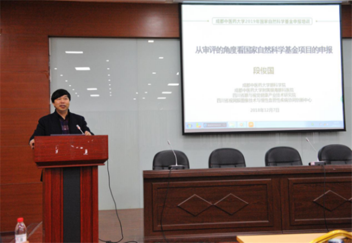 12月7日下午,段俊国教授为学校师生作了题为“从评审的角度看国家自然科学基金项目的申报”的学术报告,报告会由科技处副处长余成浩教授主持。