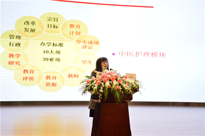 孙宏玉首先从“国标、行标、校标”三层面出发提出了研制护理类本科教学质量国家标准(简称国家标准)的重要意义,阐释了准入标准、发展标准和评价标准的深刻内涵。介绍了教育部高等学校护理学专业教学指导委员会(简称教指委)自2007年成立以来紧密围绕护理学专业的发展制定了一系列相关规范、标准,尤其是《本科医学教育标准-护理学专业》是近年来护理学专业认证的标准,以及如何将认证标准转化为国家标准。她强调说,在研制过程中,教指委还特别提出针对中医院校设立专门的中医护理标准,这为中医院校办护理专业指明了方向、提出了要求、带来了挑战。