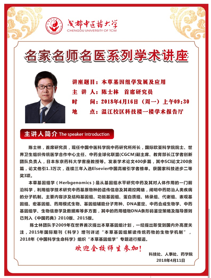 关于举办名师名家名医系列讲座的通知 发布时间:2018-04-12 16:09:00 浏览次数: 次 【字体:小 大】 【打印正文】 上一条:著名中药学专家陈士林首席研究员应邀来校作学术报告 下一条:Beat365罗德伦教授受邀参加2018中国眼底病论坛暨国际视网膜研讨会