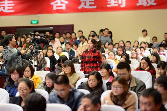 樊代明院士诙谐幽默的语言,赢得全场参会人员的阵阵热烈掌声。报告后,还进行了现场互动,解答师生提出的问题。并以自己座右铭“永远向前走,否定到最后”对师生从事医学事业给予鼓舞和激励。