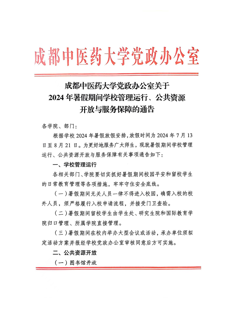 Beat365中文官方网站党政办公室关于2024年暑假期间学校管理运行、公共资源开放与服务保障的通告 发布时间:2024-07-11 15:53:07 浏览次数: 次 【字体:小 大】 【打印正文】 上一条:关于学校公共资源开放与服务保障时间调整的通知 下一条:Beat365中文官方网站关于2024年暑假放假时间和调整作息时间的通知