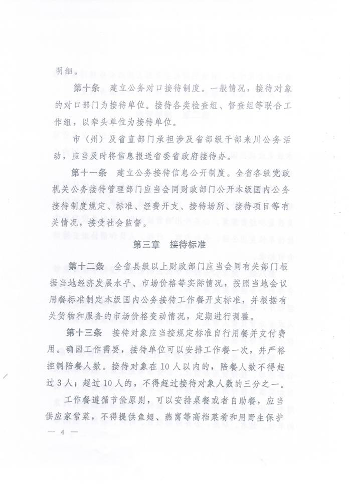 川委办〔2014〕11号-中共四川省委办公厅 四川省人民政府办公厅关于印发《四川省党政机关国内公务接待管理办法》的通知. 发布时间:2014-04-14 15:43:00 浏览次数: 次 【字体:小 大】 【打印正文】 上一条:关于实行校园临时交通管制的通告 下一条:计划财务处办理业务时间