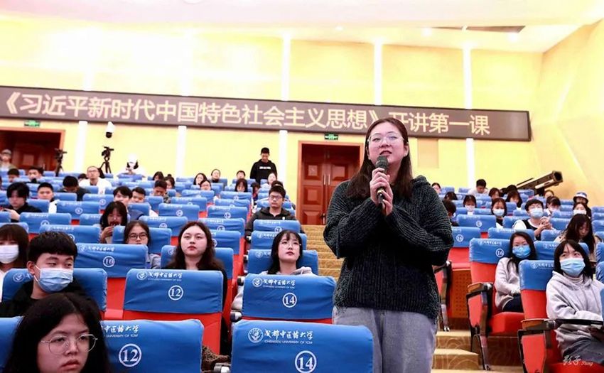 马院青年党员副教授苏森森参与了这两次公开课,并在现场作交流分享。他说,这门课程形式鲜活、内容充实,营造了浓厚的《习近平新时代中国特色社会主义思想》学习氛围,引发广大师生的强烈共鸣。课后,学生们纷纷表示:“我们将怀大医精诚之心,解国家发展之需。努力学习专业理论知识,练就过硬技能本领,为国家公共卫生事业、医疗健康事业发展贡献青年中医人的力量。”