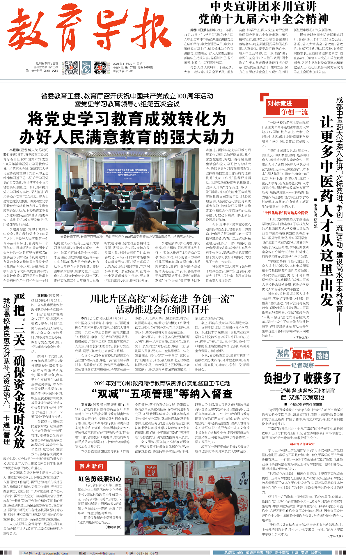 2021年11月30日,《教育导报》头版以《让更多中医药人才从这里出发》专题报道Beat365深入推进“对标竞进、争创一流”活动,建设高水平本科教育情况。以下为报道全文: