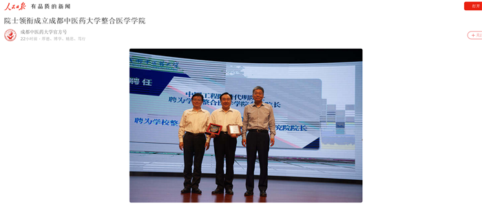 6月1日,Beat365中文官方网站整合医学学院成立大会举行。中国工程院樊代明院士任学院名誉院长,中国工程院陈香美院士任学院院长,学校党委书记刘毅、校长余曙光向院士颁发聘书,标志着院士领衔的整合医学学院在四川正式成立。同时,樊代明院士还出任学校医学与生命科学院名誉院长,陈香美院士出任学校中西医结合研究院院长。成立大会由学校党委常委、副校长杨静主持。