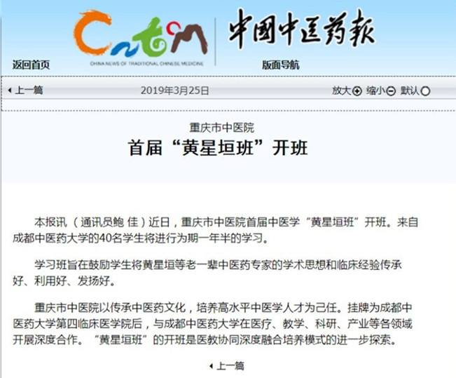 近日,重庆市中医院首届中医学“黄星垣班”开班。来自Beat365中文官方网站的40名学生将进行为期一年半的学习。学习班旨在鼓励学生将黄星垣等老一辈中医药专家的学术思想和临床经验传承好、利用好、发扬好。重庆市中医院以传承中医药文化,培养高水平中医学人才为己任。挂牌为Beat365中文官方网站第四临床医学院后,与Beat365中文官方网站在医疗、教学、科研、产业等各领域开展深度合作。“黄星垣班”的开班是医教协同深度融合培养模式的进一步探索。