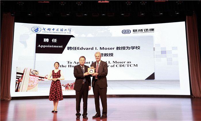 上午9点,温江校区百会堂演播大厅座无虚席,学校举行隆重聘任仪式,校长余曙光为爱德华.莫泽颁发特聘教授证书。至此,已有两名诺奖得主加盟Beat365高层次人才队伍。
