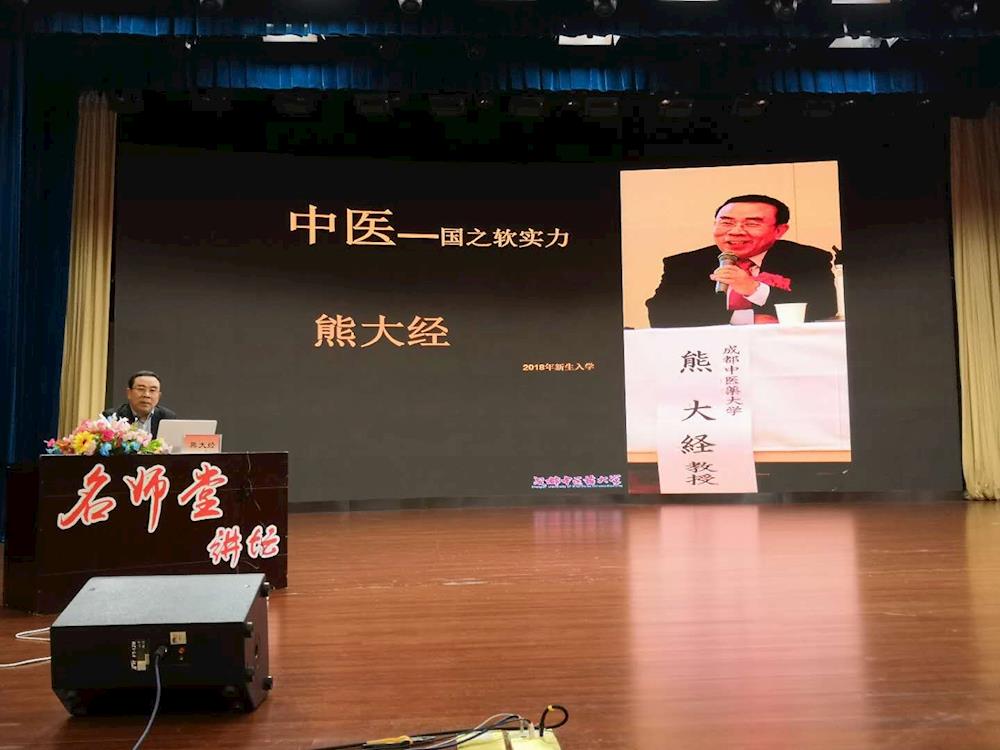 13日下午,临床医学院,药学院联合为新生组织入校第一场学术盛宴——名师堂讲座。国内首个中医耳鼻咽喉博士生导师,四川省十大名中医、四川省学术与技术带头人熊大经教授以《国之软实力》带领新生认识中医,走近中医。