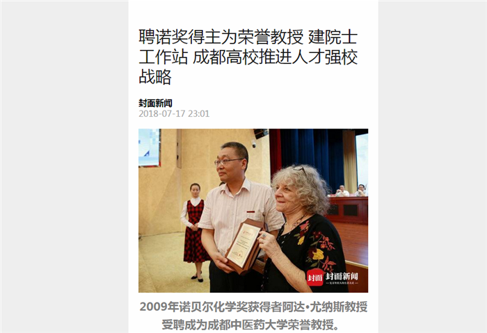 聘诺奖得主为荣誉教授 建院士工作站 成都高校推进人才强校战略