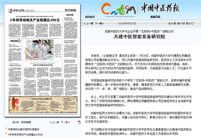 中医智能装备研究院将致力于研究“互联网+中医药”智能诊疗,探索构建中医智慧服务新模式,进一步推动中医养生、康复、精准医学及中医人工智能健康服务发展,并实现“产、学、研、用”相结合,推进产品成果转化。