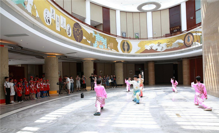 才进校园,小记者们的目光就被针灸推拿学院大哥哥大姐姐带来的中医传统养生功法表演所吸引,八段锦、五禽戏、易筋经、太极拳这些在电视上才能看到的“武功”近在眼前,有的小记者还有模有样地跟着练习起来,学习源远流长的中医养生导引术。