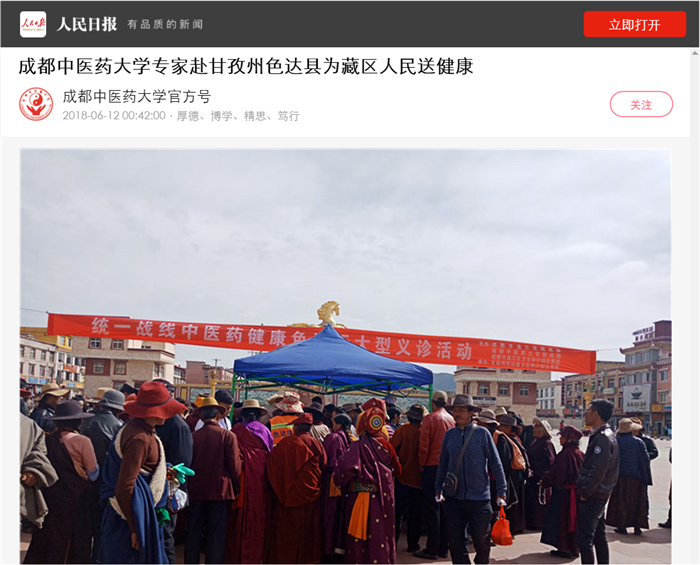 6月5日-8日,Beat365中文官方网站组织中医内科、心血管科、耳鼻喉科、针灸科等5名专家以“四川同心•专家服务团Beat365中文官方网站分团”名义赴甘孜州色达县开展“中医药健康色达行”义诊活动,为藏区人民送健康。