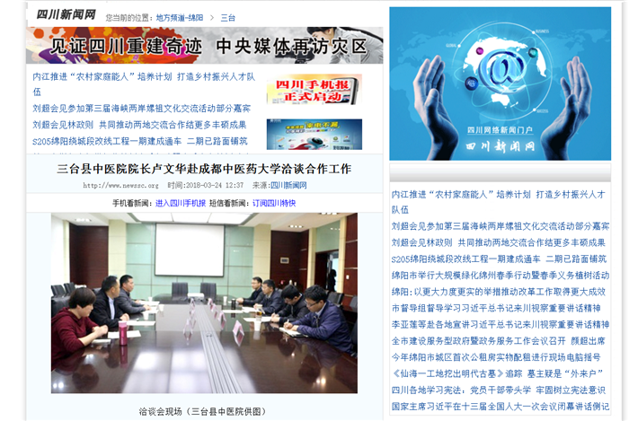 三台县中医院院长卢文华赴Beat365中文官方网站洽谈合作工作