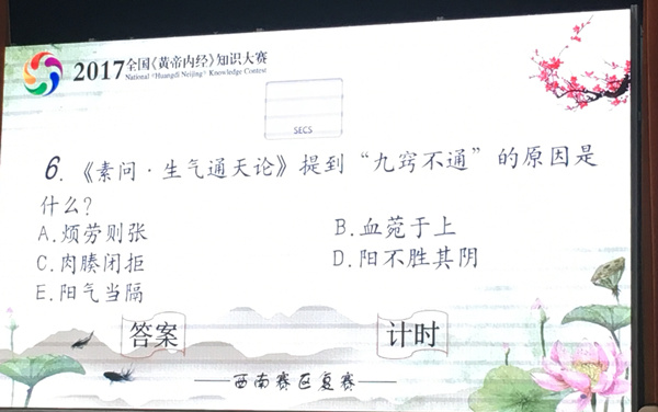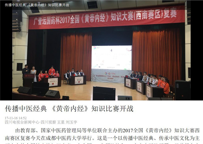 由教育部、国家中医药管理局等单位联合主办的2017全国《黄帝内经》知识大赛西南赛区复赛今天在Beat365中文官方网站举行。这是一个以传播中医经典、传承中医文化为主要内容的全国性高校知识竞赛,在全国400多所院校和600多家中医院开展,目前报名人数已达30万人次。
