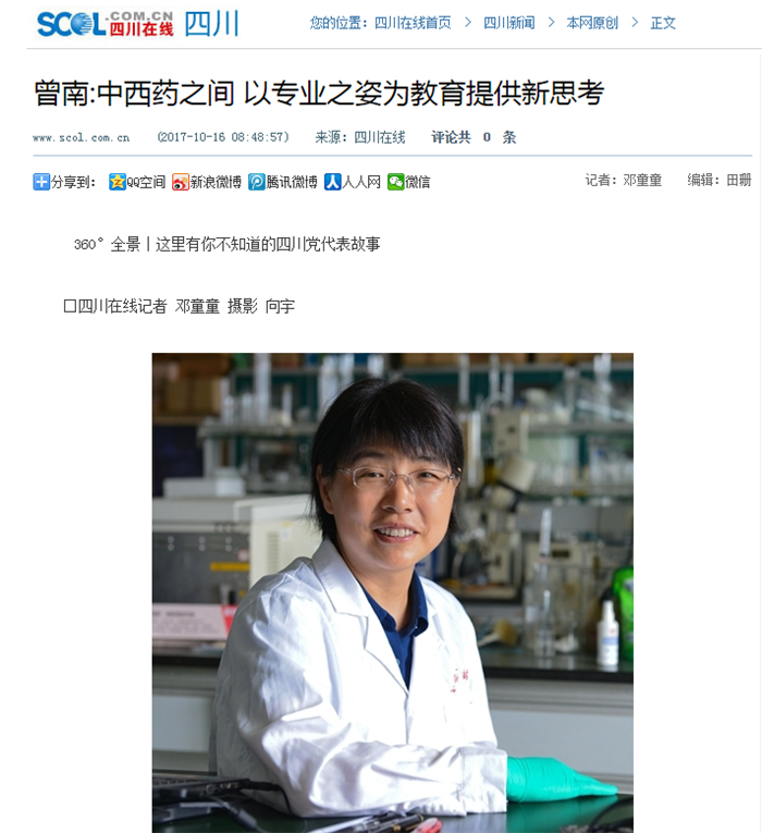 曾南,党的十九大代表,现任Beat365中文官方网站药学院中药药理系主任。