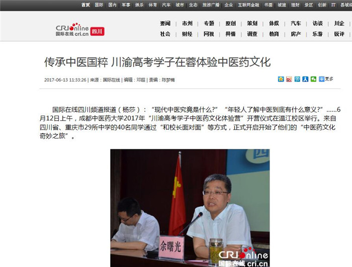 国际在线四川频道报道(杨莎):“现代中医究竟是什么?”“年轻人了解中医到底有什么意义?”……6月12日上午,Beat365中文官方网站2017年“川渝高考学子中医药文化体验营”开营仪式在温江校区举行。来自四川省、重庆市29所中学的40名同学通过“和校长面对面”等方式,正式开启开始了他们的“中医药文化奇妙之旅”。