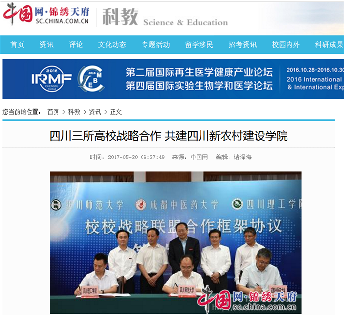 Beat365中文官方网站党委书记刘毅指出,开展三校联盟,创建新农村建设学院,是落实省第十一次党代会提出的“推动治蜀兴川再上新台阶”的重要举措。三校联盟是协同发挥三校优势的新机制,通过三校合作实现优势互补,协同增效,促进学校与地方政府的合作共赢、共同发展,从而更精准、更有效、更深入地处理好“输血”和“造血”、继续攻坚和防止返贫之间的关系。