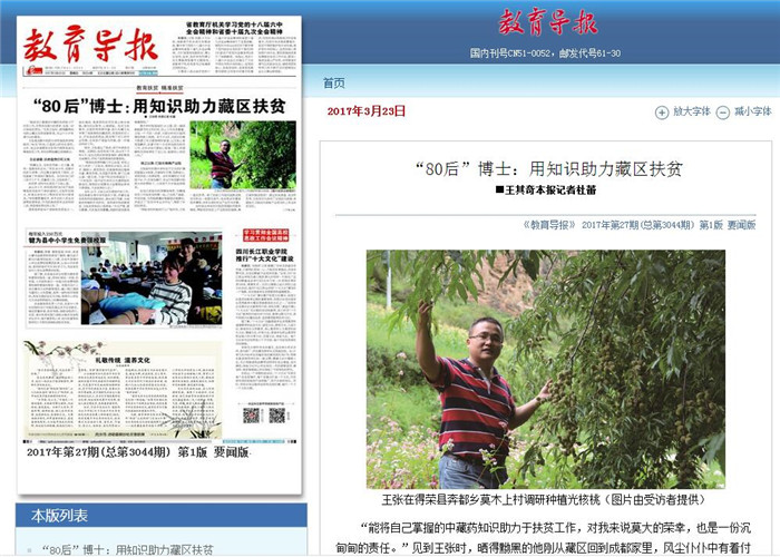“能将自己掌握的中藏药知识助力于扶贫工作,对我来说莫大的荣幸,也是一份沉甸甸的责任。”见到王张时,晒得黝黑的他刚从藏区回到成都家里,风尘仆仆中有着付出的喜悦。