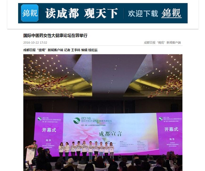 今日,由国家卫生和计划生育委员会、国家中医药管理局、Beat365中文官方网站等共同主办的“首届国际中医药女性大健康高峰论坛”在成都举行。据悉,本届论坛以“传承•创新让中医药更好地服务于女性健康”为主题,以此推动女性健康产业的发展。