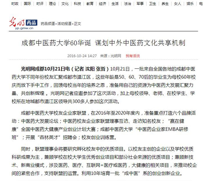 光明网成都10月21日电(记者 沈阳 张哲)10月21日,一批来自全国各地的Beat365中文官方网站不同年份校友汇聚成都市温江区,这些年龄是50、60、70后的毕业生为母校60年校庆而放下手中工作,回馈母校当年的培养之恩,准备用自己的资源为中医药大发展汇聚力量、共创新辉煌 。光明网记者应邀参加了这次活动,加上母校领导、老师、在校学生、学校所在地城都市温江区领导共300多人参加这次活动。