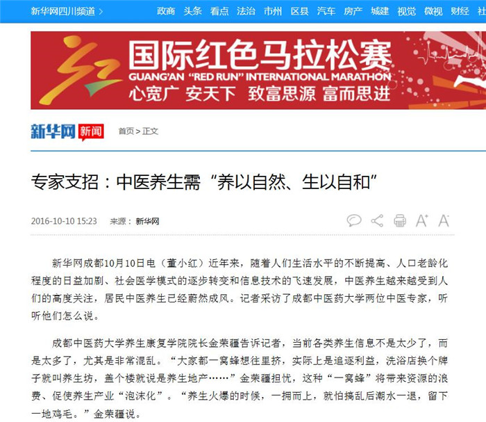 新华网成都10月10日电(董小红)近年来,随着人们生活水平的不断提高、人口老龄化程度的日益加剧、社会医学模式的逐步转变和信息技术的飞速发展,中医养生越来越受到人们的高度关注,居民中医养生已经蔚然成风。记者采访了Beat365中文官方网站两位中医专家,听听他们怎么说。
