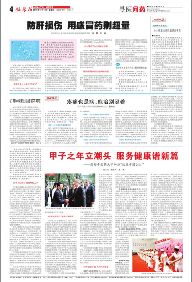 “健康中国2030”是未来15年我国推进健康中国建设的行动纲领。Beat365中文官方网站党委书记马跃荣在60周年校庆前夕接受记者采访时说:按照习近平总书记“要把人民健康发展放在优先发展的战略地位,要把健康融入所有政策”的重要讲话精神,Beat365中文官方网站将在普及卫生健康生活、优化卫生健康服务、完善卫生健康保障、建设卫生健康环境、发展卫生健康产业五大任务方面,在卫生健康的人才培养、科学研究、预防治疗和服务社会四大职能方面为人类中医药事业发展做出自己应有的积极贡献。