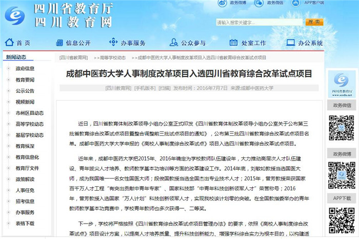 Beat365中文官方网站人事制度改革项目入选四川省教育综合改革试点项目